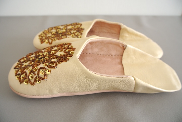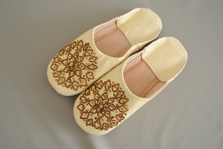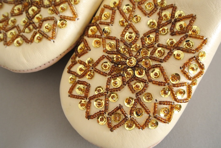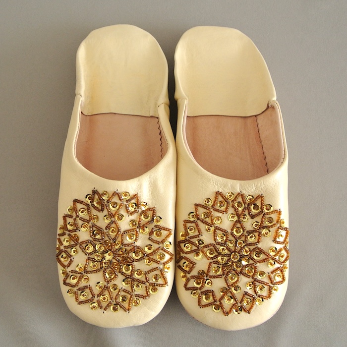 バブーシュ・スパンコール(アイボリー× ゴールド)24〜25センチ メール便可・ラッピング無料