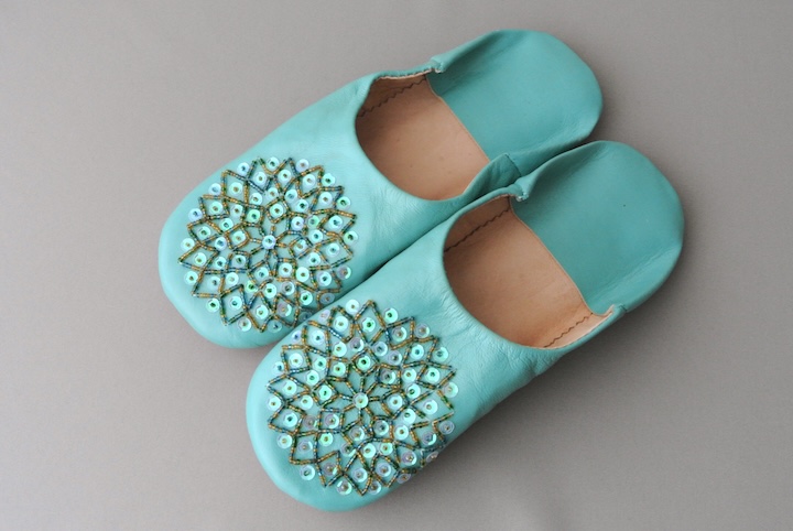 バブーシュ・スパンコール(ミントグリーン×MIX)24〜25センチ 【ちょっと訳あり】