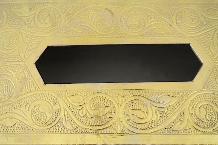 金属のボックスに彫り模様を施した