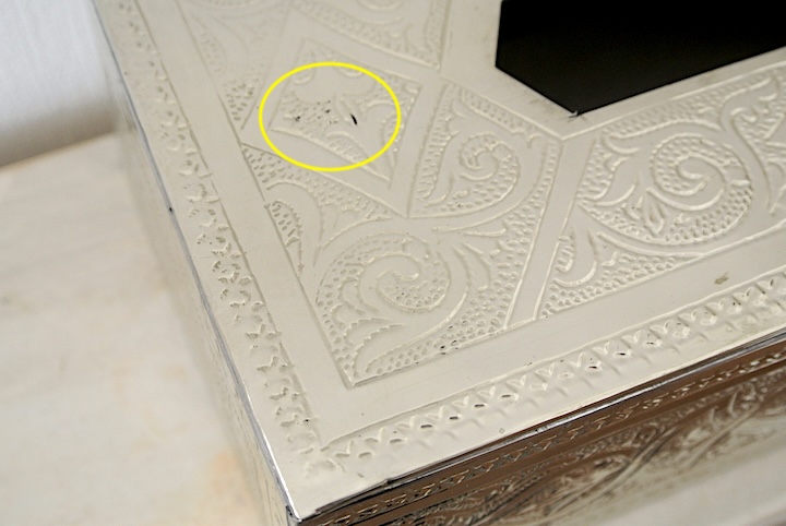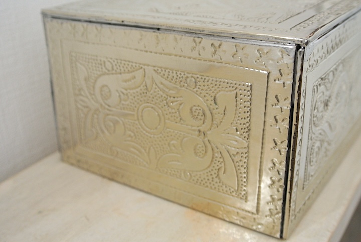 金属のボックスに彫り模様を施した