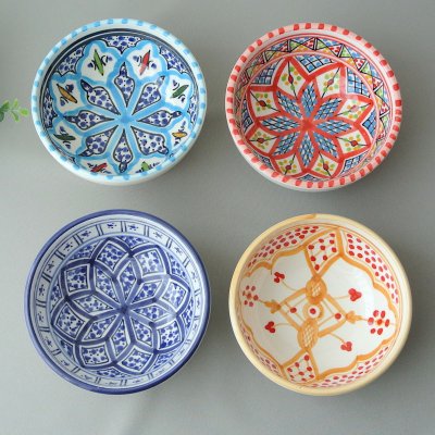 カラフルな絵柄が気分を上げてくれる陶製の小ぶりな八角小鉢。