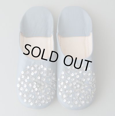 バブーシュ・スパンコール(ライトグレー×白)24〜25センチ メール便可・ラッピング無料