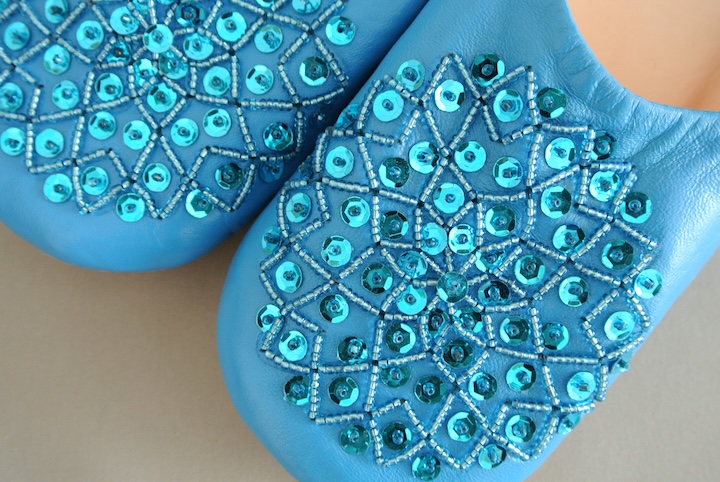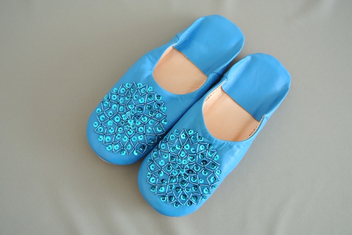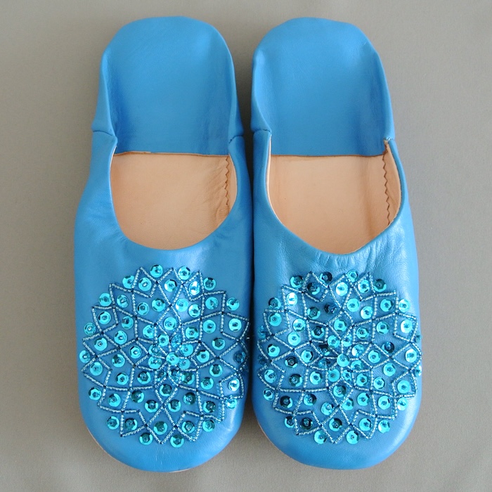 バブーシュ・スパンコール(ターコイズブルー)24〜25センチ メール便可・ラッピング無料