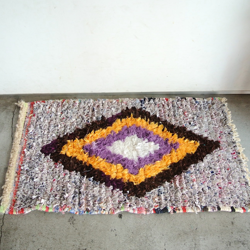 モロッコラグ|ボシャルウィット・紫×山吹色(約93×56cm) 玄関マット 一点もの 送料無料 美品