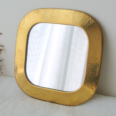 金色の縁取りに施された彫り模様がおしゃれなミラー。