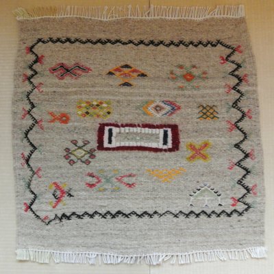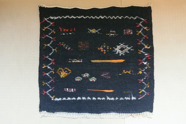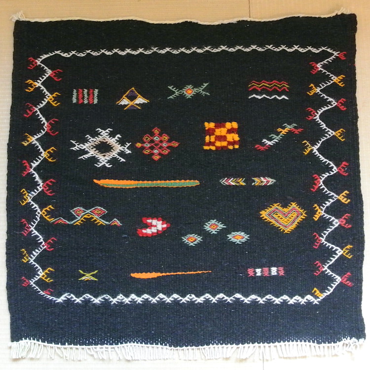 モロッコラグ |アフニフ SS(ブラックA / 約55×52cm)美品 玄関マット 一点もの