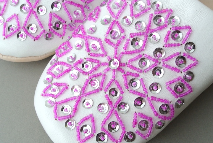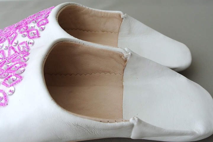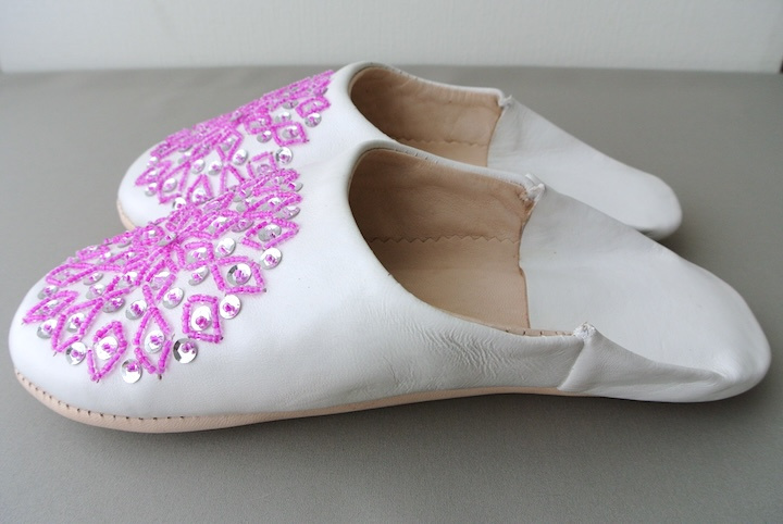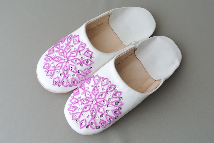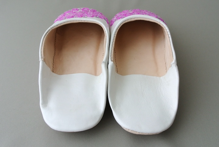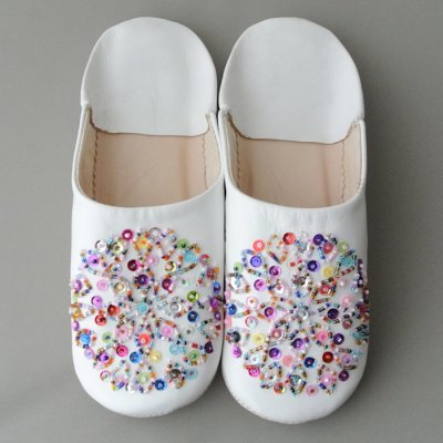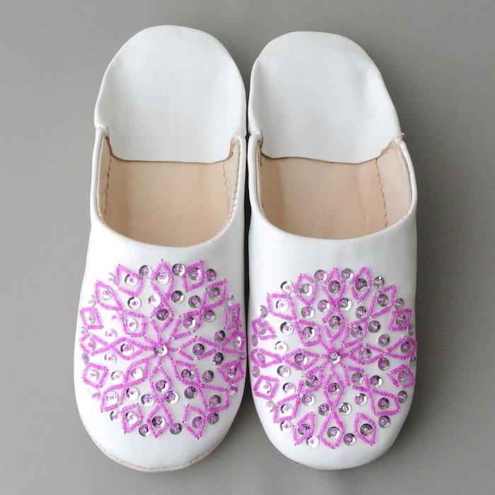 バブーシュ・スパンコール (白×ピンク)24〜25センチ 【ちょっと訳あり】