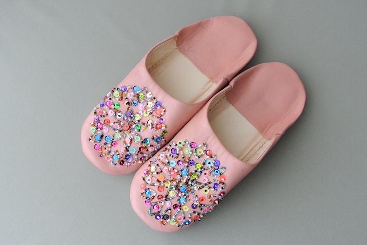 バブーシュ・スパンコール(ピンク×カラフル)24〜25センチ メール便可・ラッピング無料
