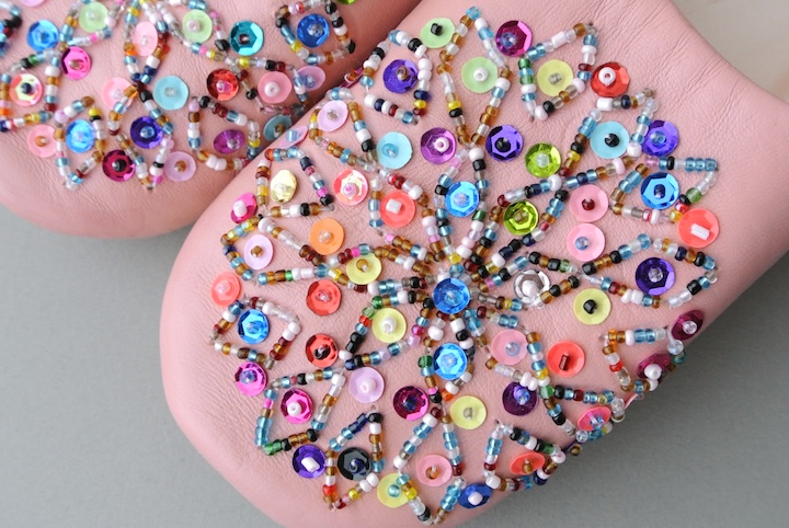 スパンコールとビーズは丁寧に縫い付けられていて