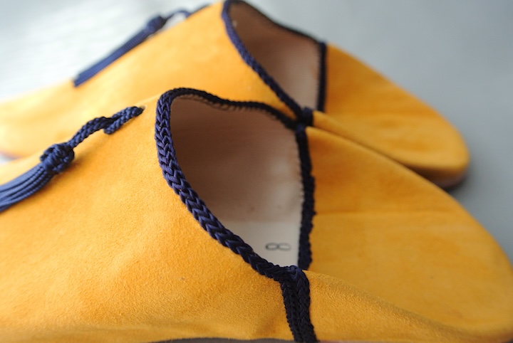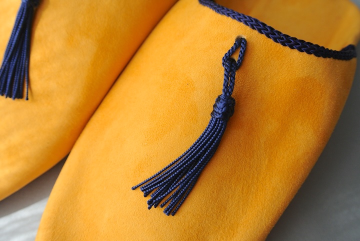 外履きバブーシュ|レディース・スウェード タッセル (イエロー×紫)23〜24センチ ラッピング無料・メール便可