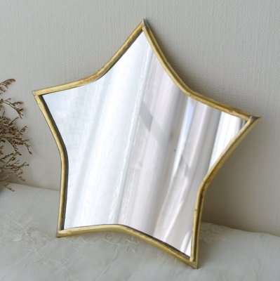 金色の縁取りに三日月の形が可愛いミラー。