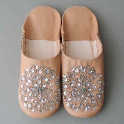 バブーシュ・スパンコール( ヌメ革×ゴールド) メール便可・ラッピング無料